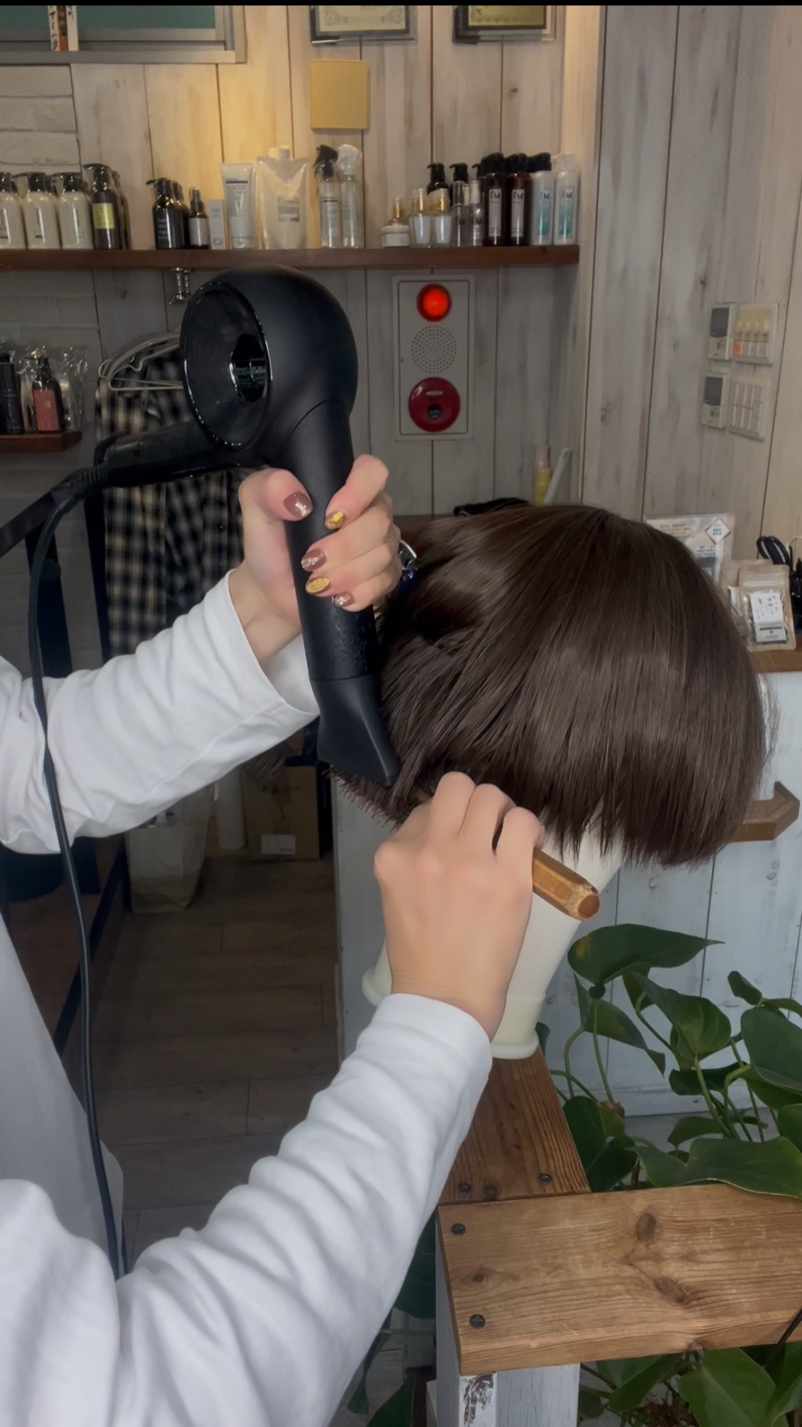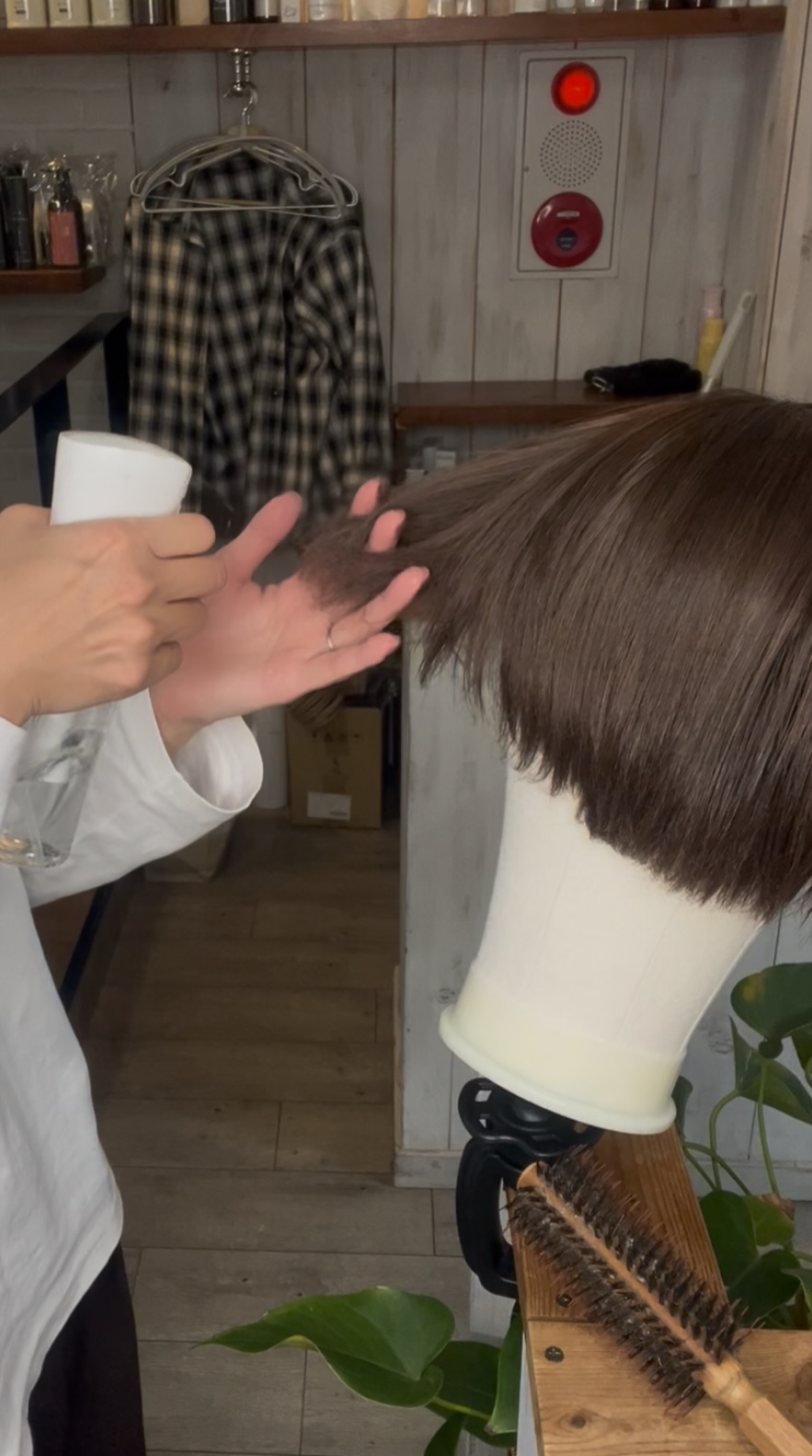 • ブラシで髪をまっすぐ保ちながら