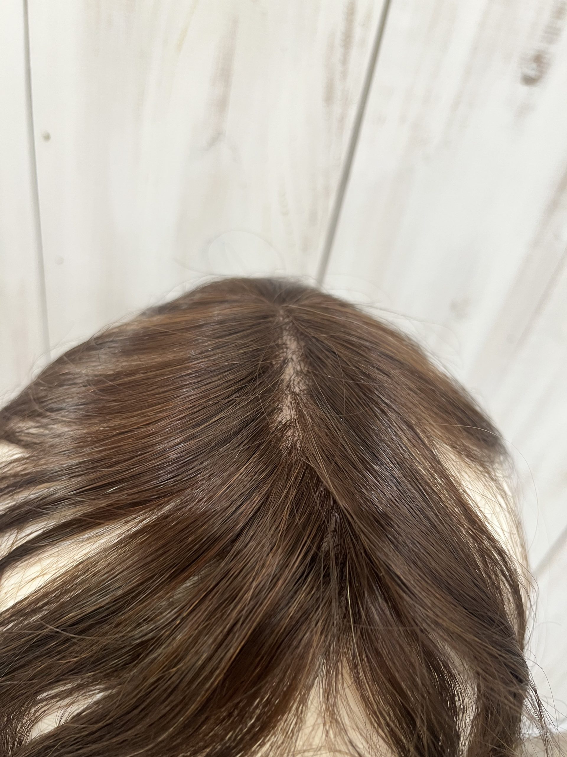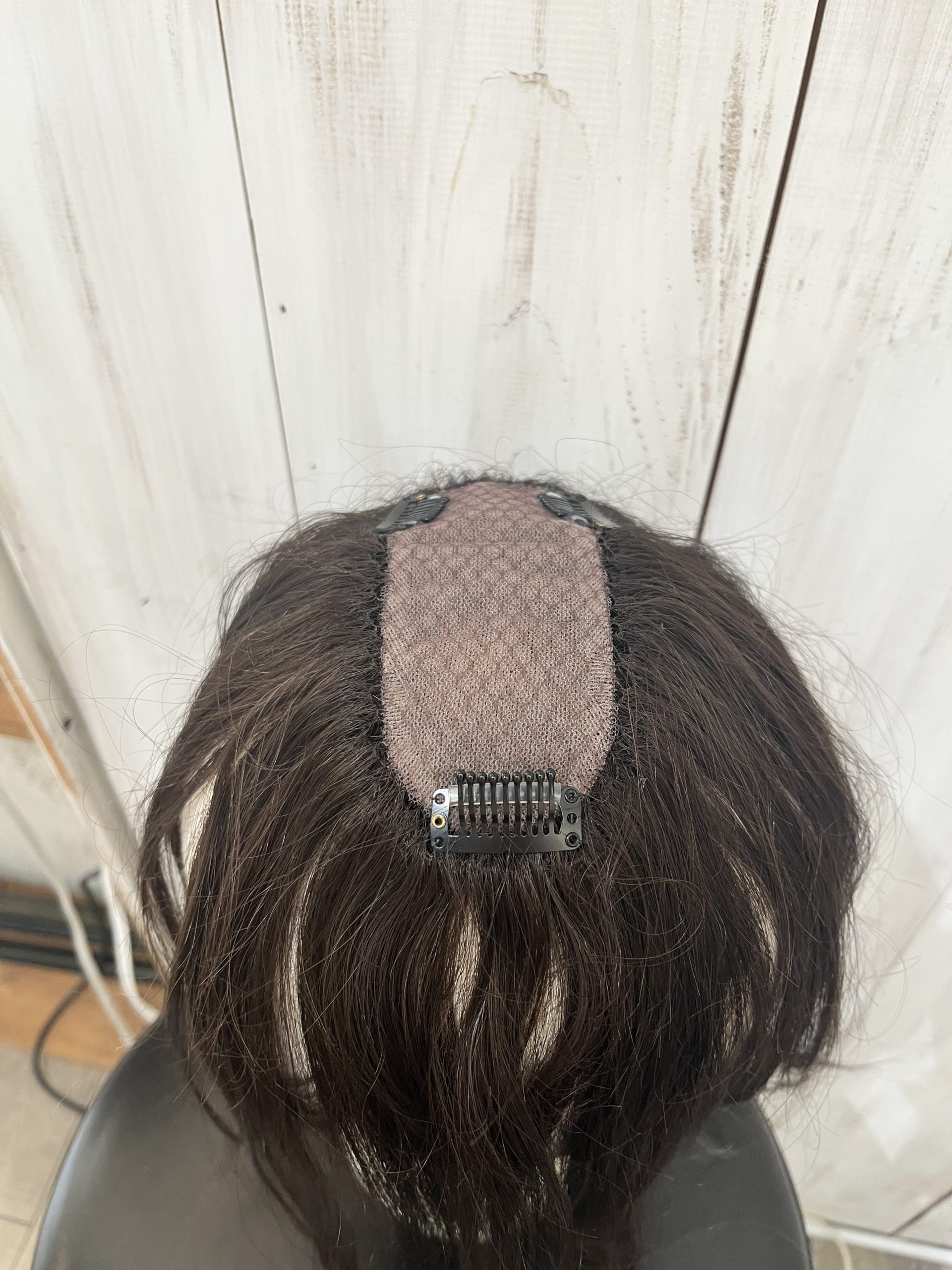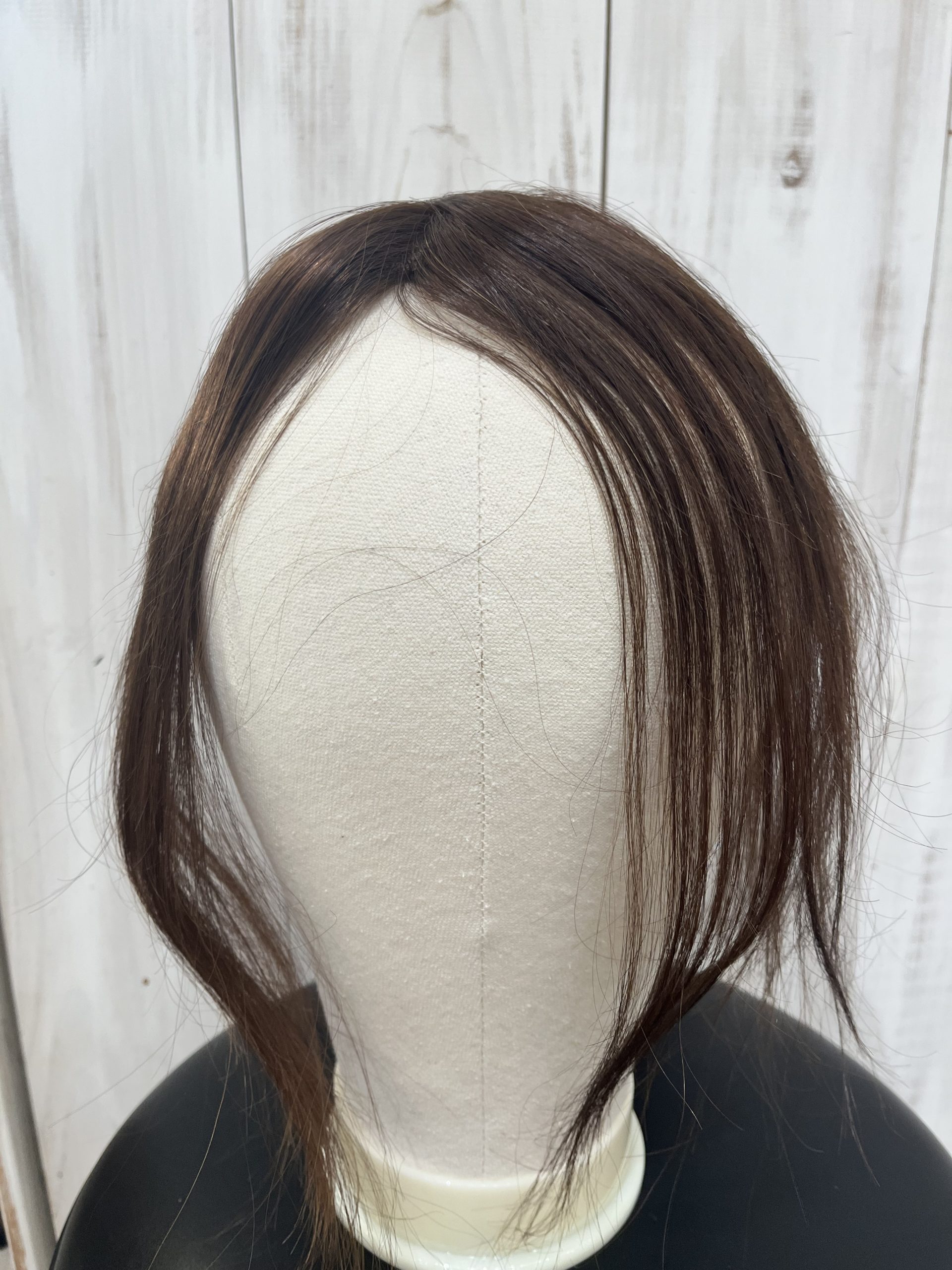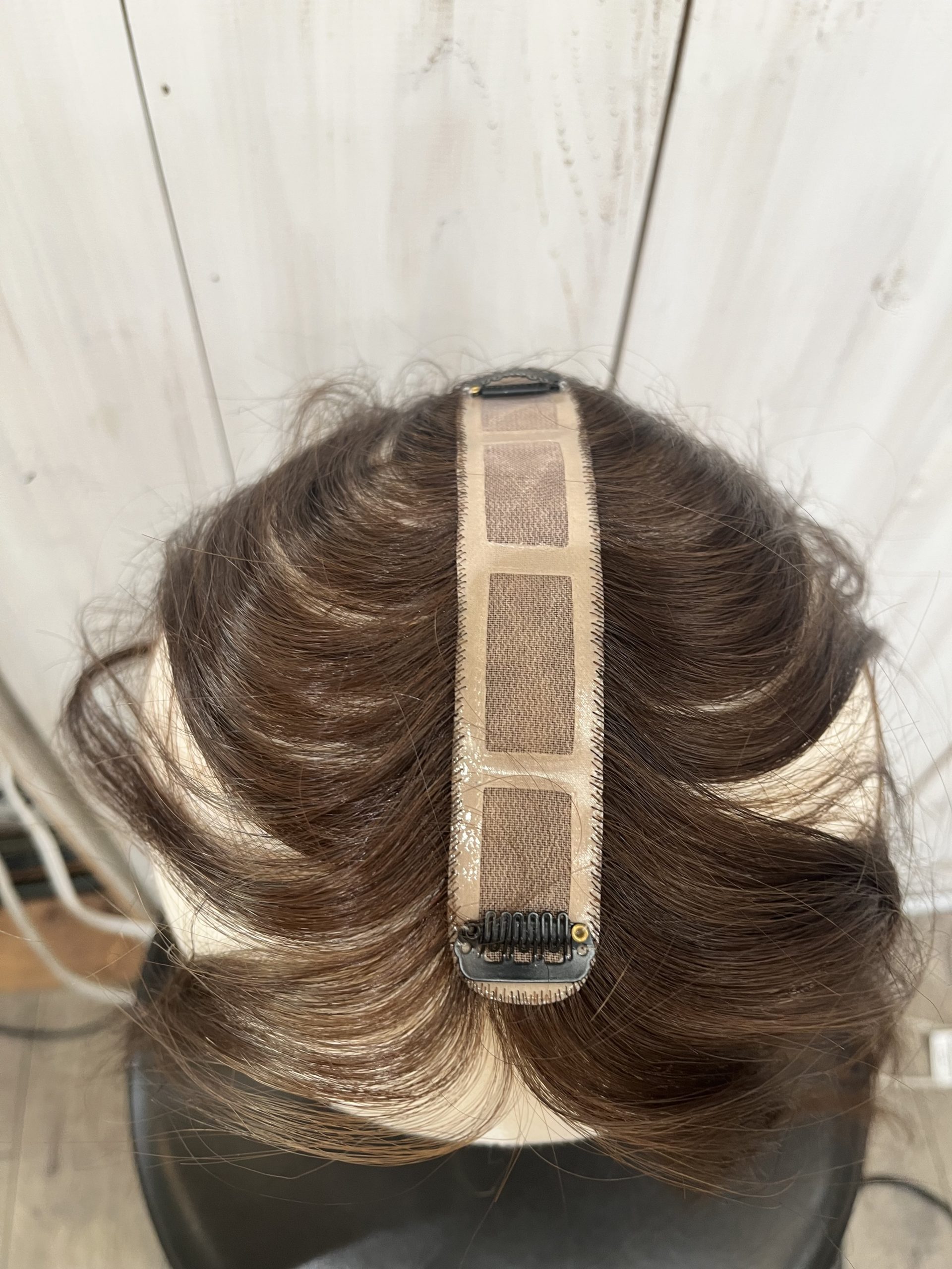 先ほどの分け目ウィッグより少し幅が広めに作られておりトップ全体のボリュームをカバーしてくれるものになります。